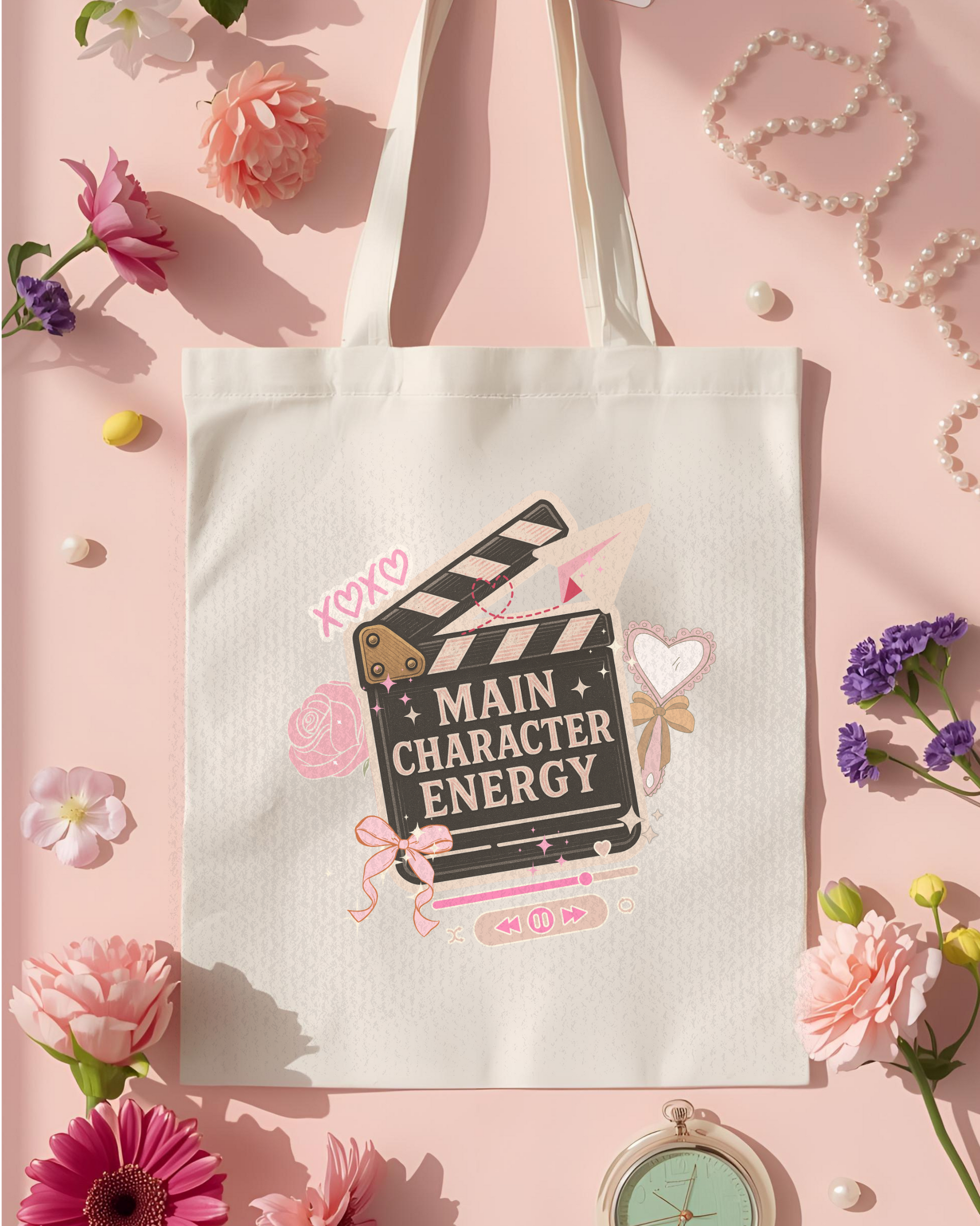 Eden and Seraph Printed Cotton Tote Bag with Zipper- Main Character Energy